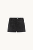 Bermuda en terciopelo con goma en cintura y trabillas. Se abrocha por delante con una cremallera y botón nácar. Va entera forrada con un tejido de algodón.