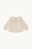 Blusa de bebé y de niña con cuello grande con detalle de hilo en contraste. Se abrocha por la parte de delante con botones de madera.