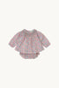 Conjunto de bebé de blusa manga larga con culotte. La blusita con detalle de punto smock en el cuello y goma en los puños de la manga. El culotte lleva goma en la cintura y goma canilla en los muslos.