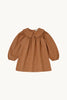 Vestido de niña con cuello pico grande. De manga larga acabada en goma en los puños.
