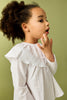 Blusa de bebé y de niña con cuello grande y un lazo en el centro.