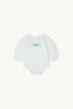 Pelele de bebé con bordado a mano confeccionado en un algodón blanco suave y ligero, ideal para el uso diario o para ocasiones especiales. Presenta un corte abullonado que aporta comodidad y libertad de movimiento, con frunces en el delantero que le dan un toque elegante.