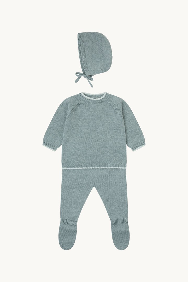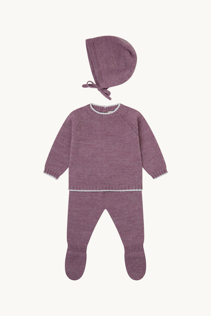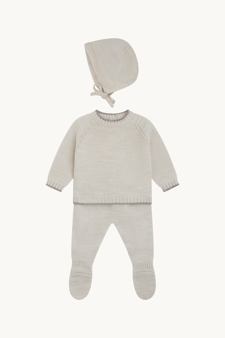 Conjunto de punto con chaqueta, polaina y capota a conjunto.