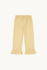 Pantalón largo de niña de vichy en tono amarillo crema. Confeccionado en un tejido suave y ligero, ideal para el uso diario o para ocasiones especiales. Presenta un corte estilo culotte con detalle de volante ancho al final. Cuenta con goma en la cintura para comodidad de la niña.